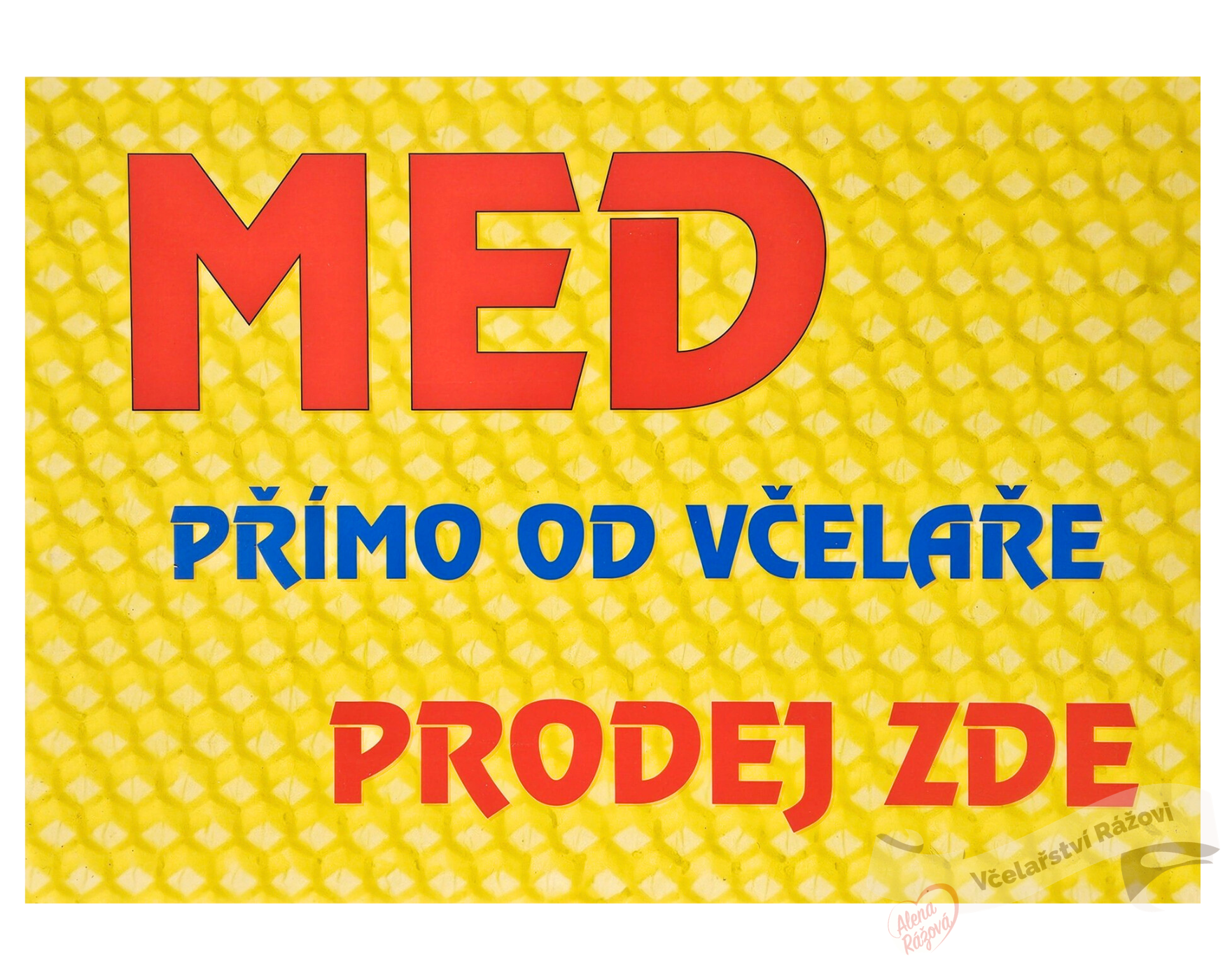 Plastová cedule: Prodej medu upoutá vaše zákazníky. Cedule je ve velkém formátu s kvalitním tiskem vynikajícím sytými barvami. Kvalitní tisk (4/0 UV) na PVC tabulce o tloušťce 2 mm (neláme se, neohýbá se). Určeno pro venkovní i vnitřní použití. Rozměry tabulky jsou 30 x 40 cm.