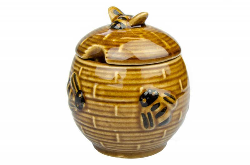 Keramická dóza ručně malovaná na med nebo cukr s víčkem.