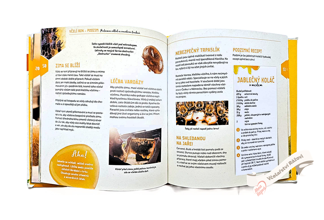 Naučná kniha o životě včel a fungování včelstva během celého roku. Je vhodná pro děti, ale i pro dospělé, kteří se chtějí dozvědět víc o včelách, přírodě a včelaření. Kniha sleduje celý rok v úlu, popisuje, co se ve včelstvu děje: