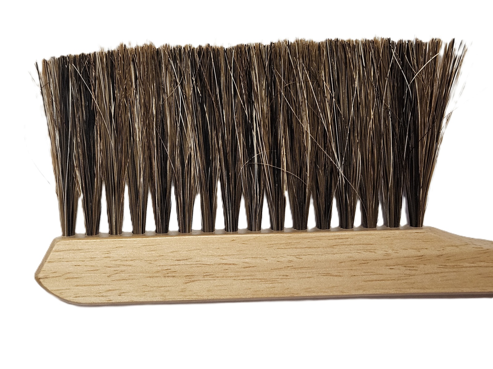Kapesní včelařský smetáček s rukojetí. Je vhodný k jemnému a ohleduplnému ometení včel z plástů, které jsou připravené na vytočení. Smetáček neublíží včelám, ani nepoškodí plásty s medem.