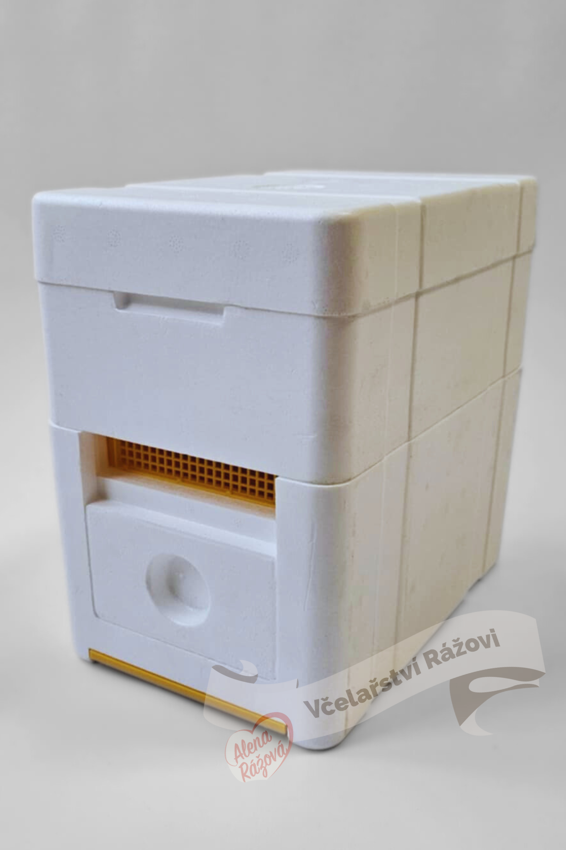 Oplodňáček pro jednu matku z tvrzeného polystyrenu a plastu. Střecha oplodňáčku je polystyrenová. Součástí balení je polystyrenové stropní krmítko pro snadnou obsluhu při krmení. Lze přidat neoplozenou matku nebo matečník. Po začátku kladení matky je nutno ihned odebrat a přidat novou matku nebo matečník jelikož je v oplodňáčku málo prostoru a hrozí nebezpečí vyrojení. V oplodňáčku je již přichystaný miniaturní plastový tří rámek.