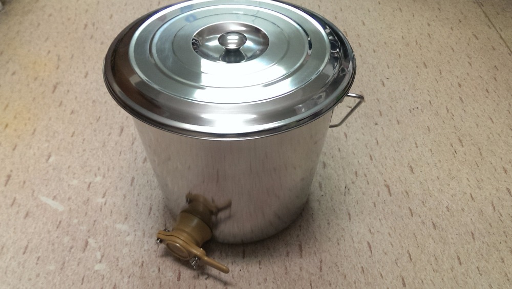 Nerez stáčecí nádoba na 25 kg medu. Velmi kvalitní nerez. Víko nádoby s těsněním a třemi stahovacími sponami. Nerez nádoba má sklápěcí uši pro snadné přenášení. Ventil na stáčení medu je zabudovaný. Vhodné i pro skladování medu. Rozměry: Výška 32cm, šířka 30cm.