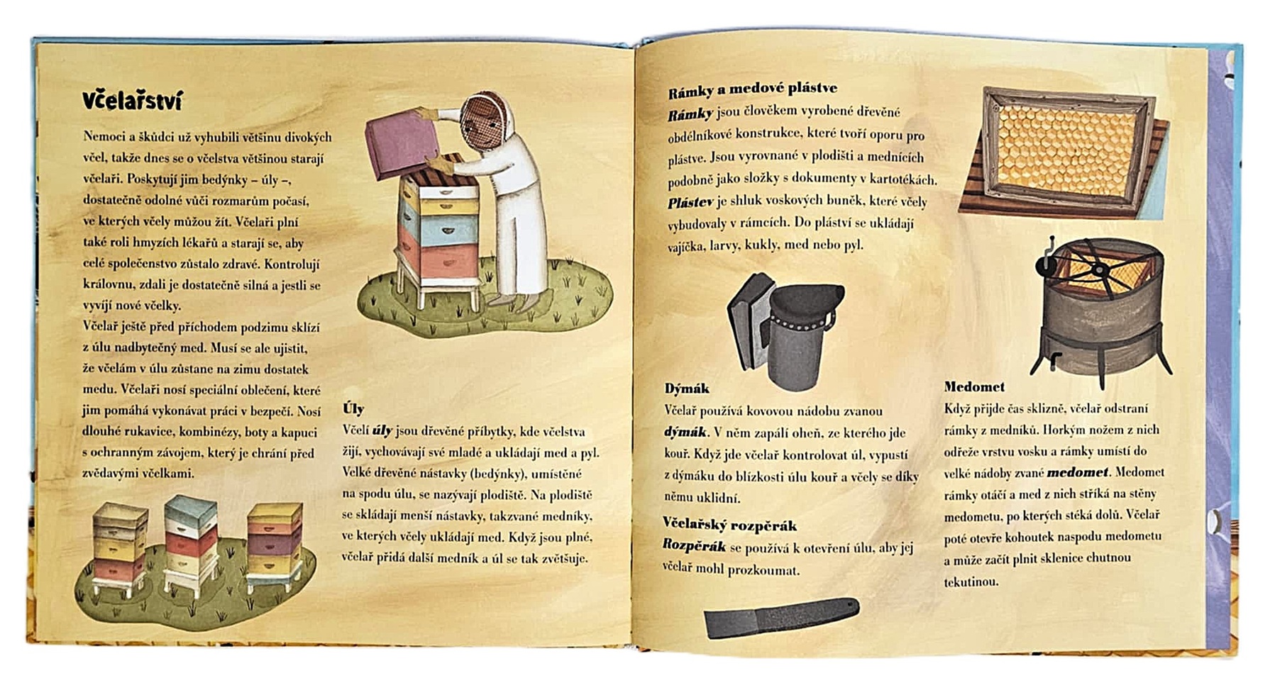 Krásná ilustrovaná dětská kniha, která malým čtenářům přibližuje svět včelaření a význam včel pro přírodu i člověka.