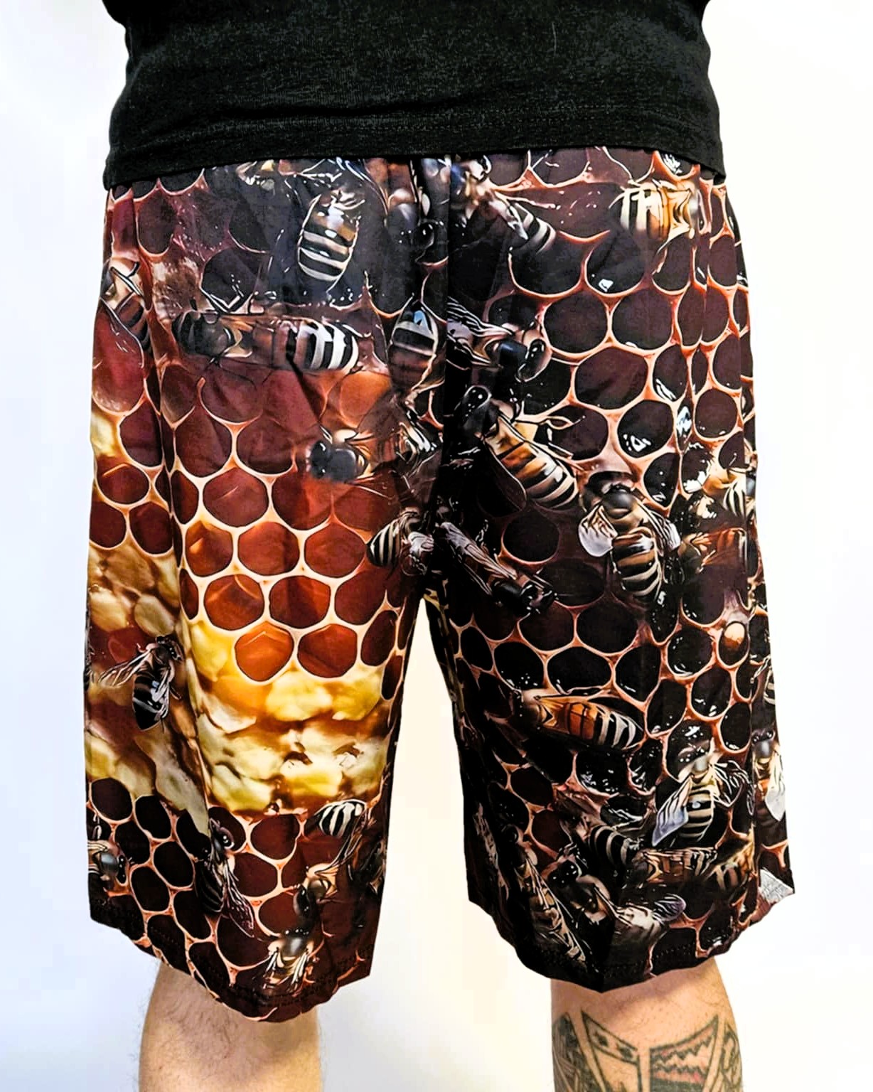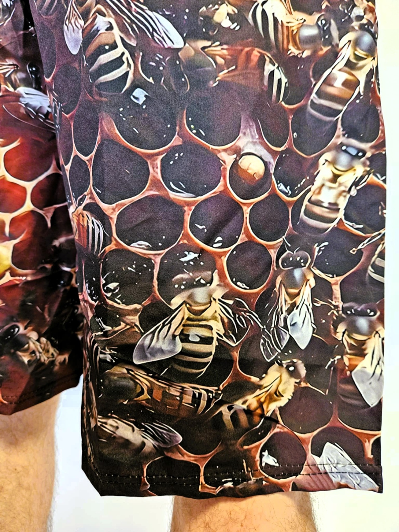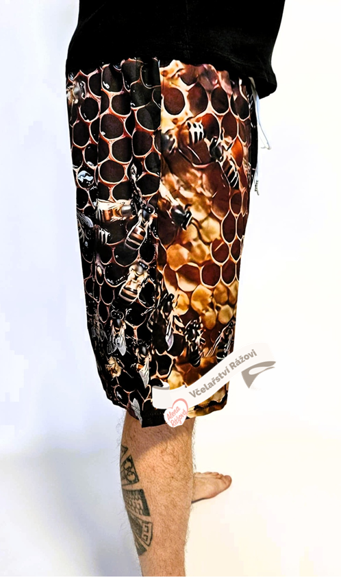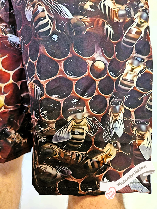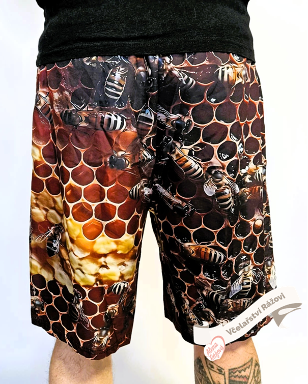 Včelařské šortky jsou ideální pro letní včelaření. Včelař se v nich pohybuje pohodlněji než v dlouhých kalhotách nebo kombinéze. Šortky jsou ušity ze 100% polyesteru volnějšího střihu pro pohodlí, pružný pas se stahovací šňůrkou s délkou lehce nad kolena. Díky materiálu jsou šortky odolné proti oděru, umějí se lépe vypořádat s potem či vlhkostí, jsou lehké. Kapsy jsou praktické pro nářadí, zápisník, zapalovač pro kuřáky apod.
