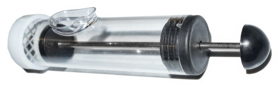 Pomůcka kombinuje dvě funkce v jednom: umožní matku jemně vychytit přímo z plástu bez přímého kontaktu a následně ji bezpečně zafixovat pro označení. Průhledné plastové tělo dává neustálou kontrolu nad polohou matky, takže pracujete klidněji a přesněji. Klíčovou částí je molitanový píst, který při přitlačení matky k mřížce tlumí tlak a snižuje riziko poranění. Díky tomu je značení jednodušší i pro začínající včelaře.